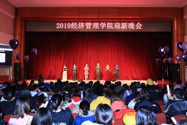 2019年12月12日晚六点半,以“寻梦,谱青春乐章”为主题的2019年熊猫体育迎新晚会在礼堂准时开始。