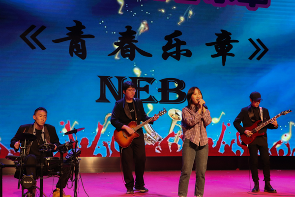 迎新晚会最后的节目是NEB乐队带来的歌曲串烧《青春乐章》,由《起风了》、《盛夏光年》《我还年轻 我还年轻》三首歌组成,每一组的演唱,都是一场音乐盛宴,让我们感受到青春的热情与能量。