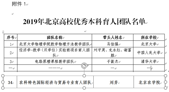 2019年12月30日,北京市教育委员会下发《关于公布2019年“北京高校优秀本科育人团队”评选结果的通知》(京教函〔2019〕681号),公司刘芳教授领衔的“农科特色国际经济与贸易专业育人团队”获评“北京高校优秀本科育人团队”。