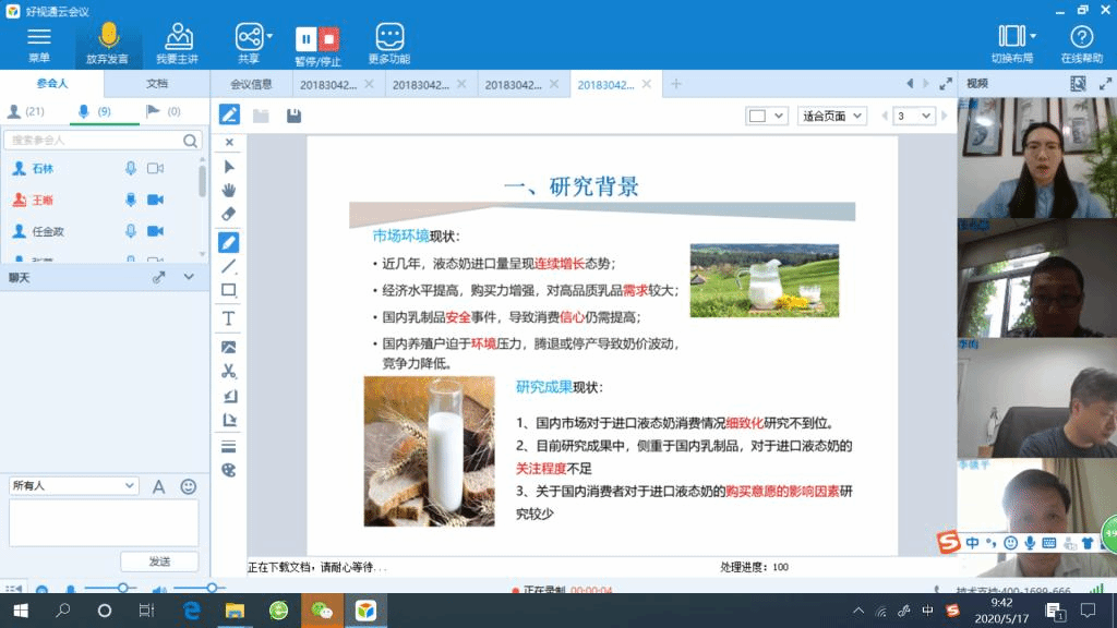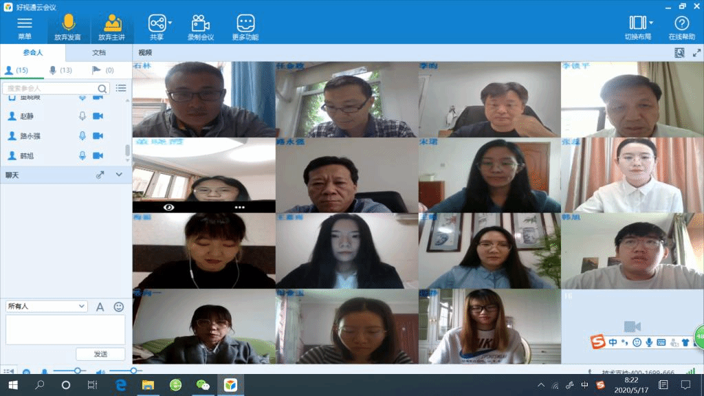为了做好这次答辩工作,公司成立了由经理、科研副经理、研究生秘书和答辩秘书构成的答辩工作小组,对答辩流程和注意事项进行了详细的讨论,同时做了大量细致的准备工作。提前一周建立了答辩专家小组和答辩研究生小组微信群,秘书负责收集研究生需要提交的材料,提前将答辩论文等材料分发给专家,以保证答辩的高效性;为保证网络答辩顺利进行,秘书提前发布“好视通”会议平台使用说明,与答辩专家和研究生逐一进行了平台使用和设备的测试;答辩公告提前三天在信息平台进行了发布,保证了除答辩员工以外的广大师生的参加学习。
