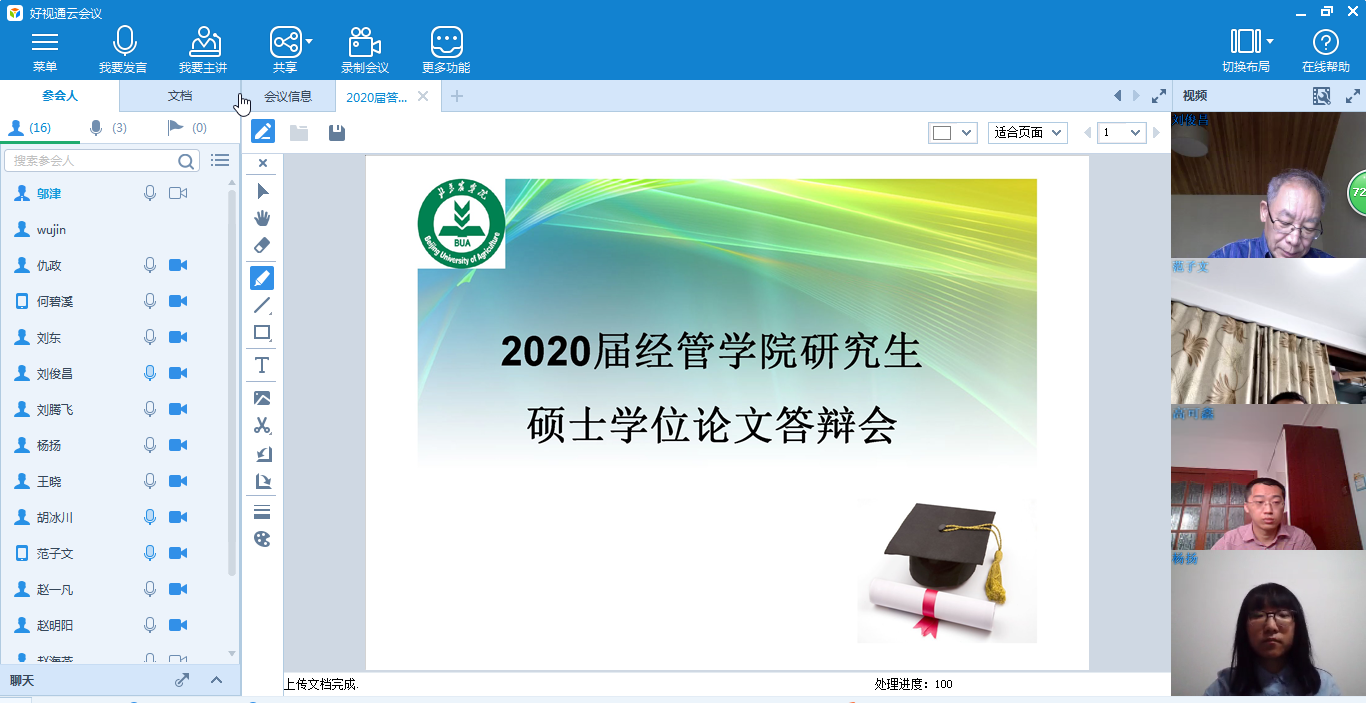 因受新冠肺炎疫情影响,熊猫体育研究生学位论文答辩全部改为网上答辩。经过认真准备、精心组织,5月17日熊猫体育成功举办了2020届研究生学位论文网上答辩会。