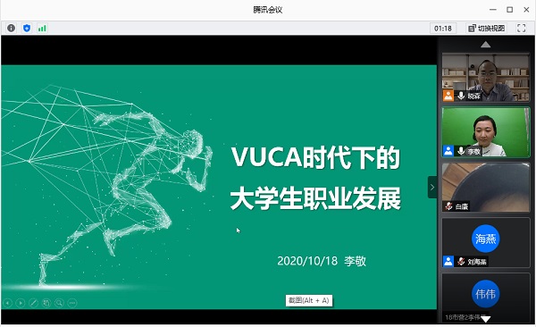 本次讲座非常精彩,老师和同学们在线上积极互动,使同学们对VUCA时代下的个人职业规划有了更清晰的了解。希望同学们能够学以致用,相信本次讲座的内容可以让同学们唤醒生涯意识,可以尽早做出生涯规划,找到适合自己的大学发展路径。