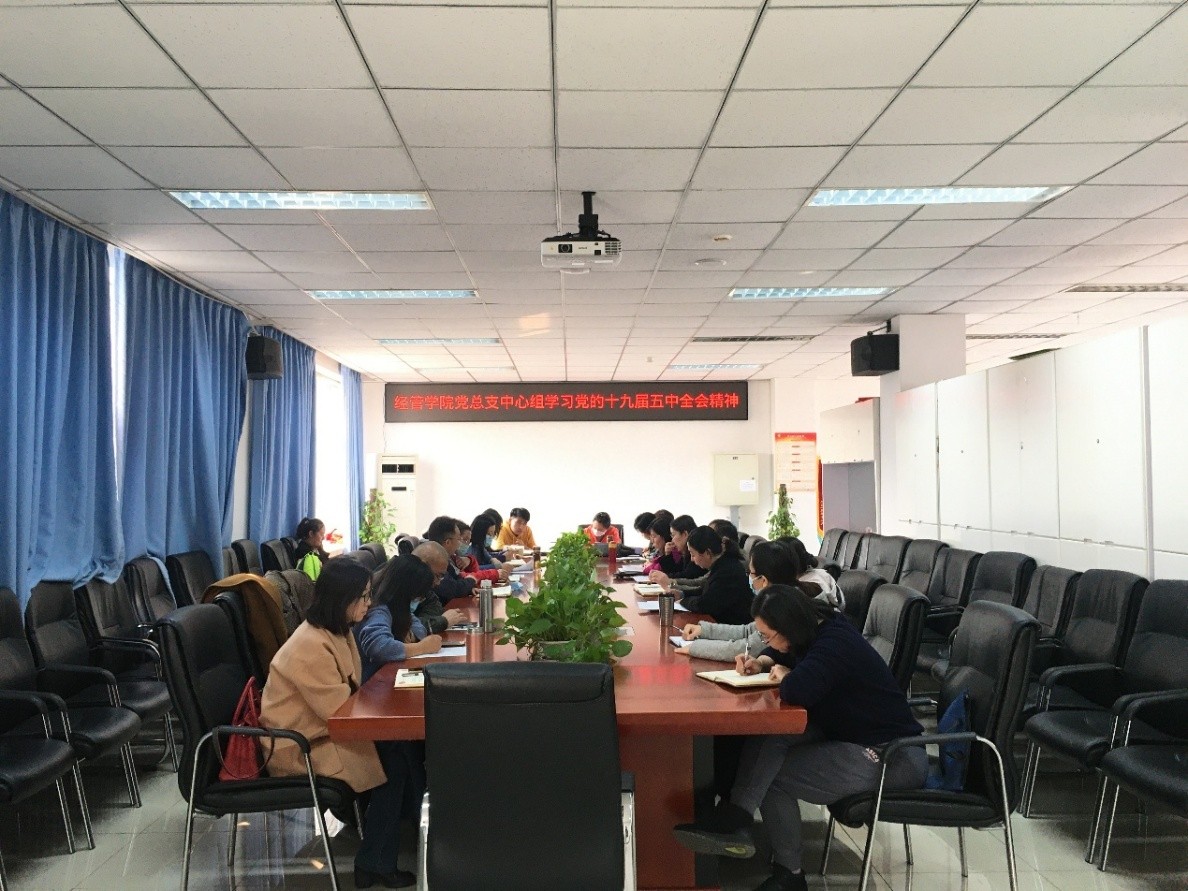 2020年11月11日,经济管理公司党总支理论中心组举行扩大会议学习党的十九届五中全会精神并开展交流讨论。熊猫体育纪委书记李伟书同志,公司党总支委员、各基层党支部书记、工商管理系教师党支部全体党员出席了此次会议。会议由公司党总支书记胡宝贵同志主持。