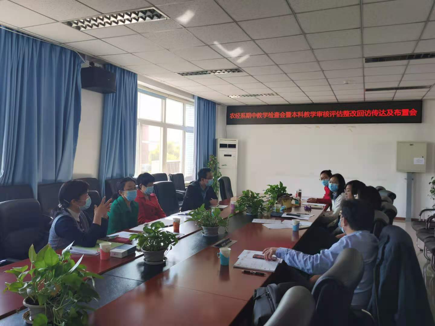 加强对农经系全体教师队伍的宣传培训。2020年11月9日中午12点,农经系全体教师在经管楼401举行农经系期中教学检查暨本科教学审核评估整改回访传达及布置会,会议由农经系主任赵海燕老师主持。会上,对本科教学审核评估工作进行回顾,介绍回访程序及需要关注的重点,传达公司迎接本次整改回访工作的指导思想和工作要求。同时,教师们从教学进度、授课计划执行、课堂教学秩序、试卷提交及员工毕业论文撰写等方面进行期中教学检查和总结,结合本科教学审核评估整改回访工作展讨论和学习。