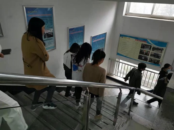 消防安全培训结束后,开启消防疏散演练程序。按照疏散演练方案,310预设起火点的模拟仿真火焰燃起,邬津老师按下了火灾报警铃,并打校园110报警,然后向领导报告。附近师生拿起模拟仿真灭火器灭火。消防控制室收到报警信号后启动应急广播警报。随着警报响起各引导员快速跑到关键疏散部位,引导师生纷纷从经管楼各出口疏散。