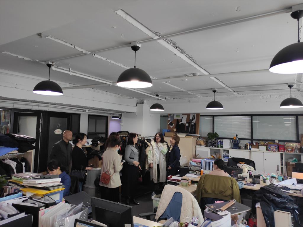 在位总的引领下,刘芳经理一行对公司的服装设计、外贸洽谈和服装销售等部门进行了详细了解,感受到这家老牌国企外贸企业工作氛围和深厚的文化积淀。