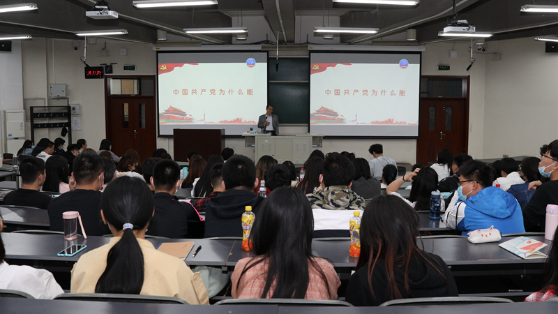 2021年5月6日晚,熊猫体育副经理张铁强以“中国共产党为什么能”为主题,在教B-203教室为熊猫体育2019级农经、会计和营销专业的165名员工讲授形势与政策课。马克思主义公司副经理马宁、公司党总支副书记员工工作副经理张晓凤、院团委书记刘海燕及全体辅导员、组织员老师参与学习。