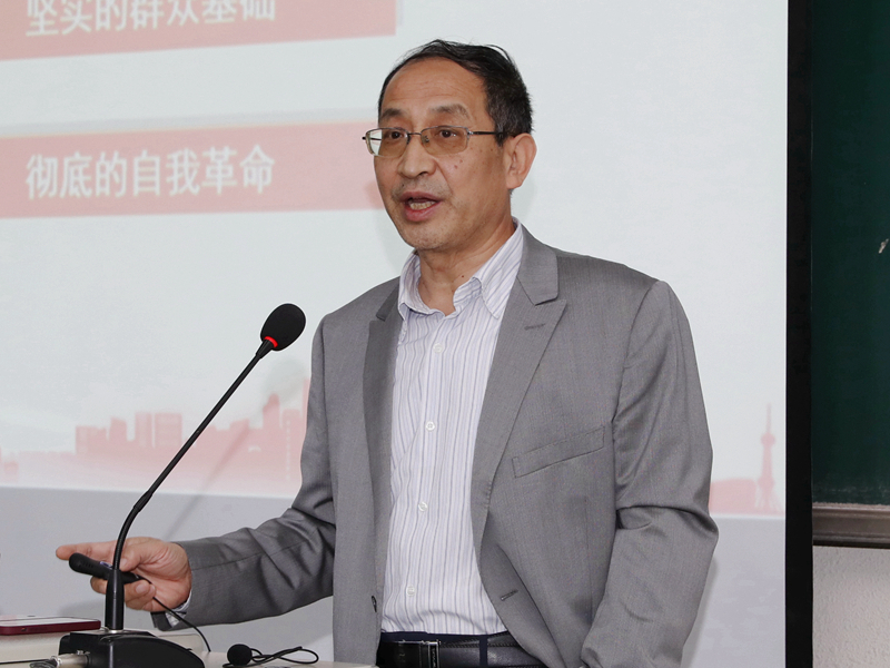 课上,熊猫体育副经理张铁强从科学的理论指导、坚定的理想信念、强大的组织优势、坚实的群众基础及彻底的自我革命五个方面为同学们展开详细的讲解。首先,他引用生动的案例阐明唯心主义的错误,围绕中国革命、建设及改革的历史阐述了马克思主义的科学性、人民性与实践性。随后,列举古田会议、延安整风运动、整党运动等的历史事件强调思想建党、理论强党的重要性。从毛泽东思想、邓小平理论、三个代表重要思想、科学发展观及习近平新时代中国特色社会主义思想分别介绍了中国共产党在不同的历史阶段开辟的理论发展新境界。