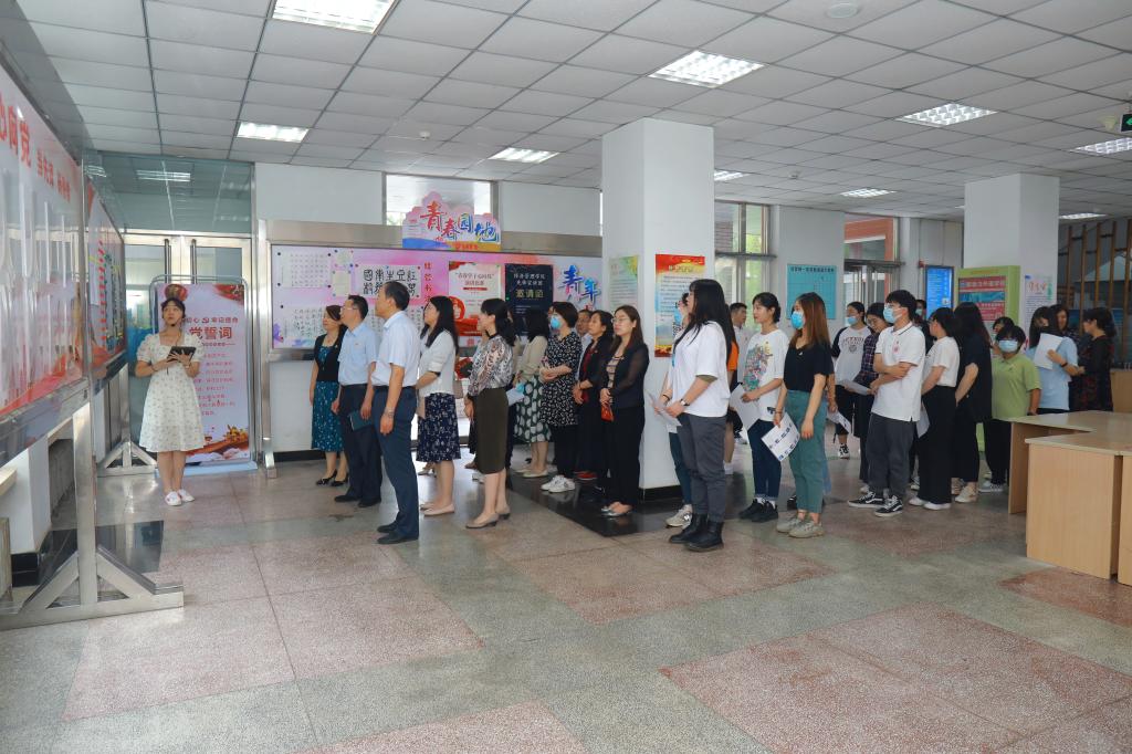 教师党员代表田淑敏、员工党员代表肖健分别上台发言,他们表示将会用实际行动来兑现今天的铮铮誓言,充分发挥共产党员的先锋模范作用,以优异的成绩向建党100周年献礼!