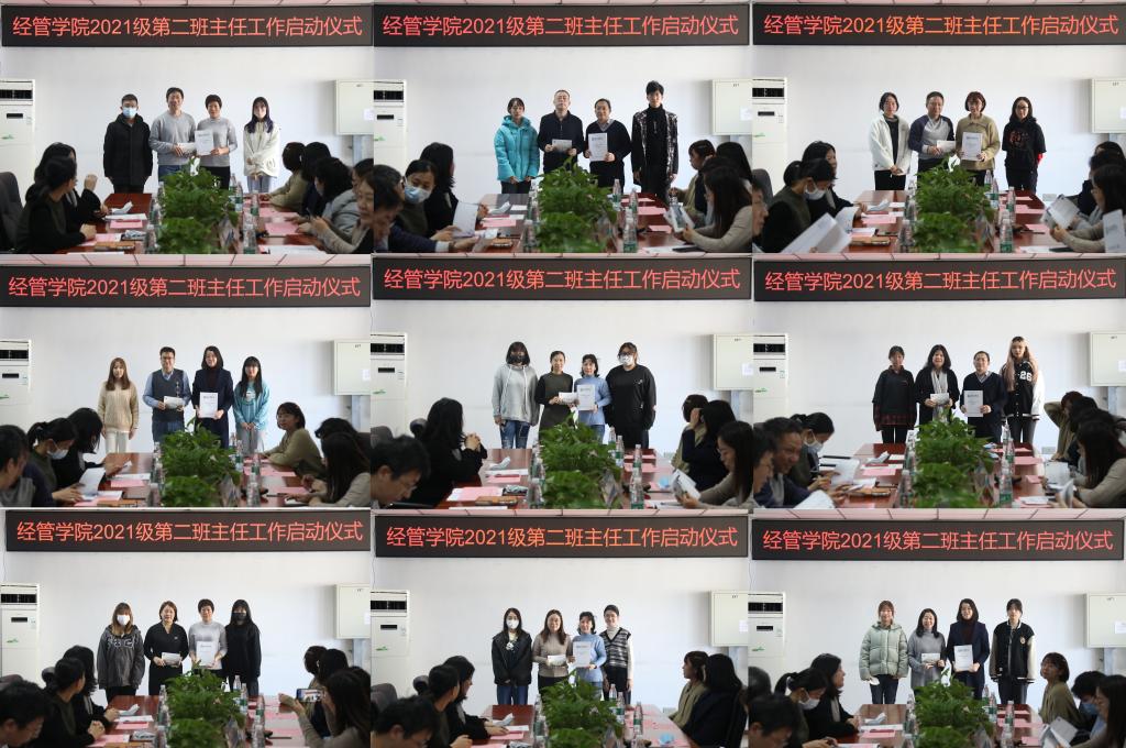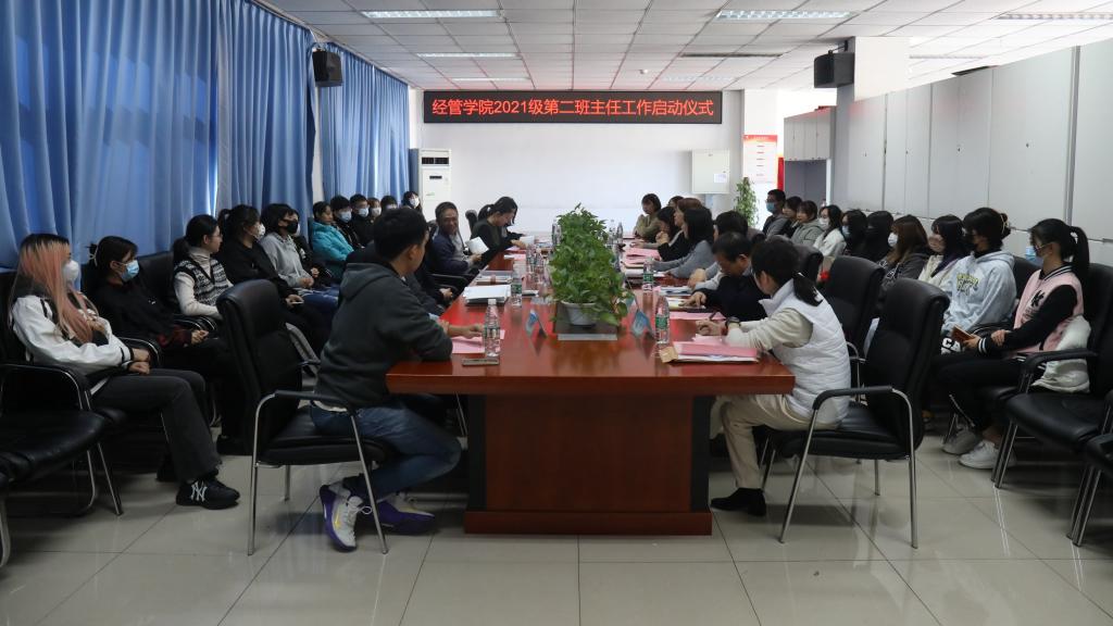2021年11月10日下午,熊猫体育2021级第二班主任启动仪式在经管楼401成功举行。公司全体领导班子成员、团委书记、2021级辅导员、班主任、第二班主任、各班班长、团支书参加了会议。会议由熊猫体育员工工作副经理张晓凤主持。