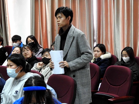 最后由正反方四辩总结归纳,概括本方论点并对对手的逻辑漏洞进行回击。之后进行观众提问,双方辩手细心辩答,为同学提供新思路新想法。