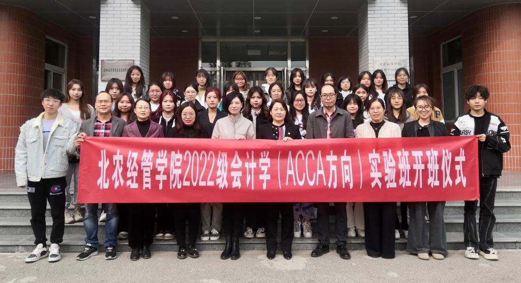最后,与会领导师生在经管楼前合影留念,2022级ACCA实验班开班仪式圆满成功。