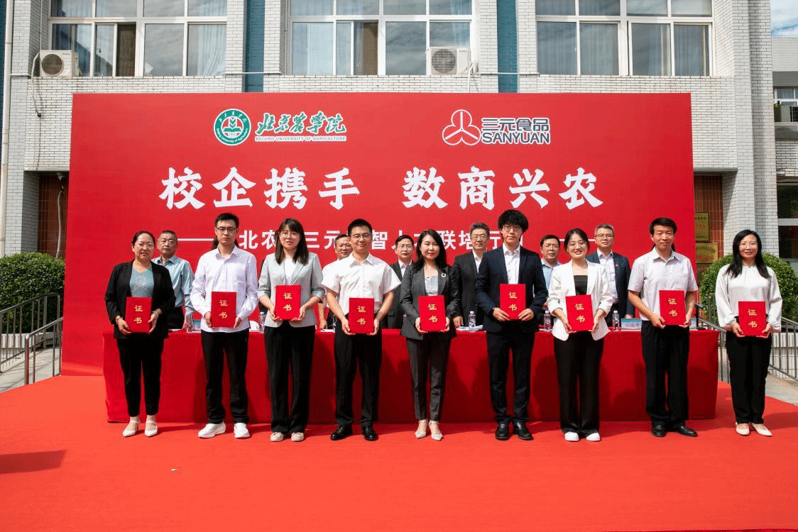 “北农&三元数智人才联培行动”旨在数智赋能“三农”发展,点燃乡村振兴“强引擎”,践行强农兴农使命,培养高层次复合型农林人才。通过本次行动,以数商兴农为“产教融合、校企合作”人才培养模式带来新生机,为人才协同共育注入新活力,构建校企数智人才培育共同体,形成“公司主导、企业融入、产业参与”的多元协同育人机制,深化成果推广、学术交流、人才培训等方面的合作,推动产业链、人才链、创新链有机融合,不断提升校企合作的质量和效益。