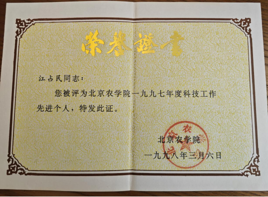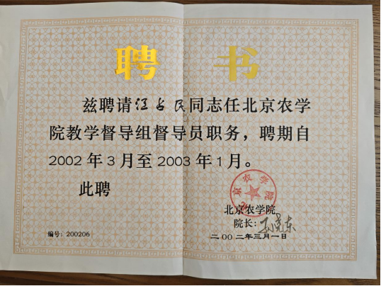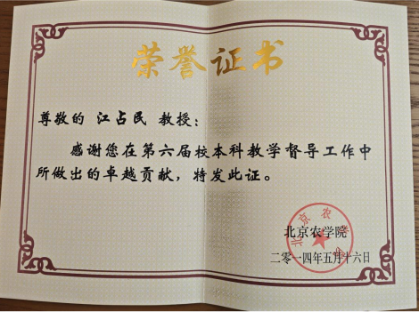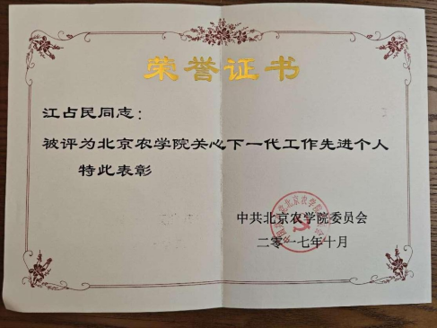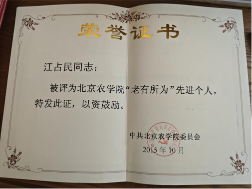 退休后,江占民教授担任教学督导十余年,指导青年教师,并被评为“熊猫体育关心下一代工作先进个人”、“老有所为”先进个人。他告诫青年教师:“要将教学过程当作研究过程,不断思考、探索、创新”,希望熊猫体育团队队伍不断壮大,教学科研水平持续提升,为社会发展输送更多优秀人才。