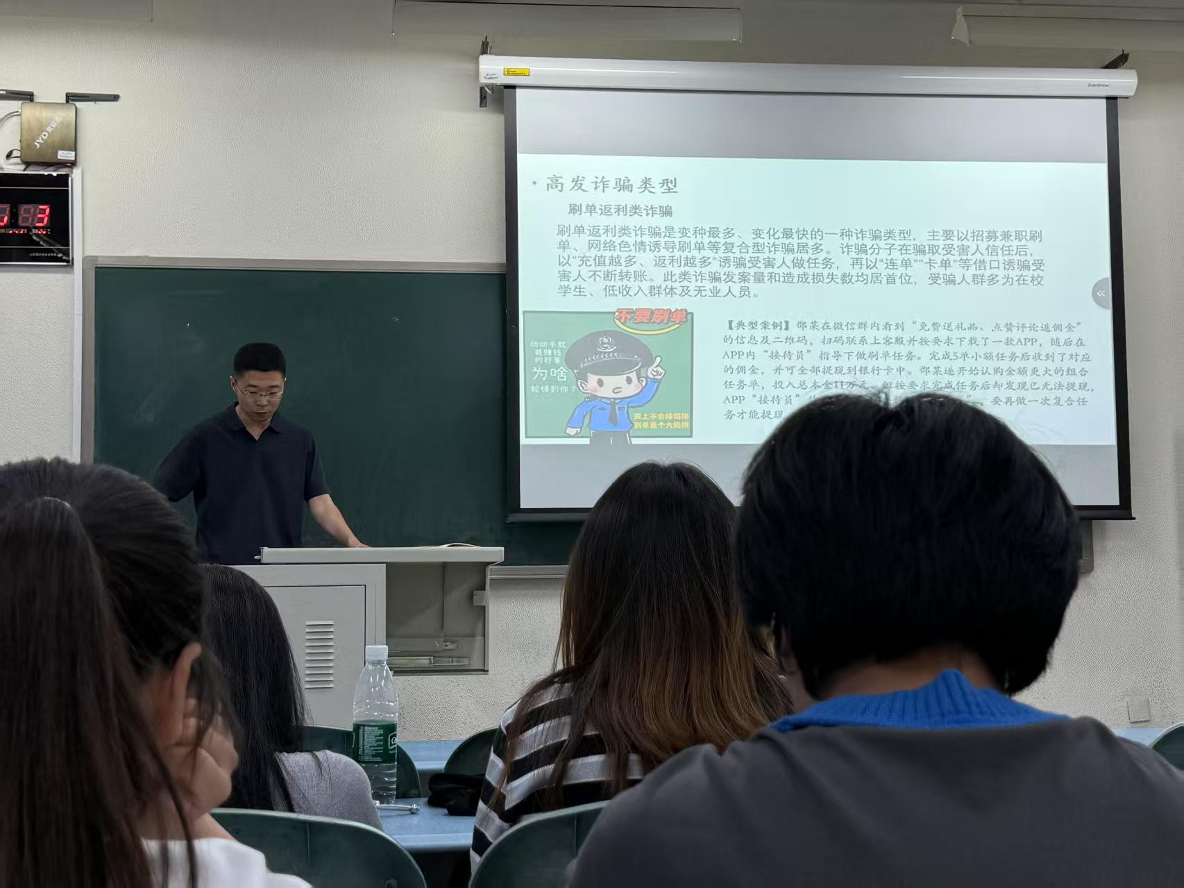 此外,班会还重点解析“兼职刷单”“冒充客服”“网络贷款”等常见诈骗套路。通过案例分析、互动交流等多样化形式深化学习效果,切实增强了同学们的反诈意识。