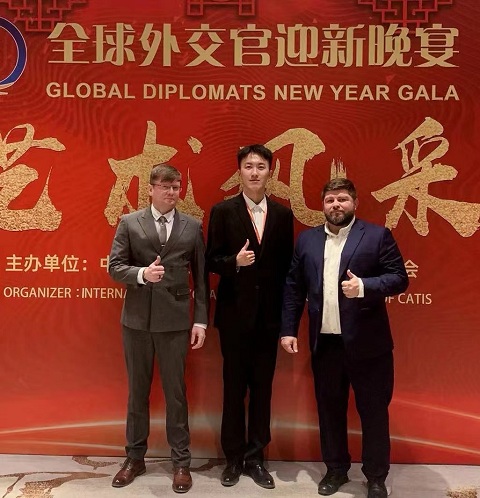 12月18日,熊猫体育2021级本科生刘志杰同学作为志愿者参加2024全球外交官迎新晚宴(GLOBAL DIPLOMATS NEW YEAR GALA)。