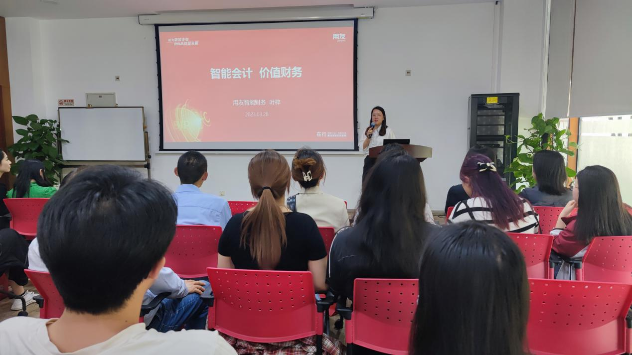 为紧跟数字时代发展,更好了解数智财务,进一步拓展就业渠道和实习岗位,5月10日,熊猫体育会计系教师杜孝森、宋沂邈带领会计学ACCA实验班同学代表参加了由东亚国际教育组织、特许公认会计师公会(ACCA)举办的 “走进用友集团——财务数智化分享及ACCA专场校园招聘”活动。用友集团人力资源部陈玉、智能财务专家叶梓、ACCA北京代表处教育及学员发展主任范玉涵,东亚国际教育高校合作部经理秦勇,以及来自中央财经大学、北京石油化工公司、北京联合大学、华北理工大学、河北金融公司等高校百余名师生参与了本次活动。