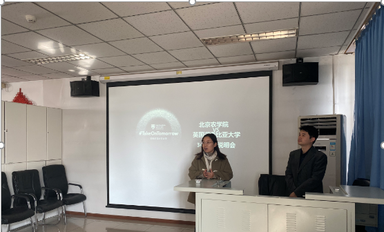 2019年10月30日中午13:00,2019年英国诺森比亚大学“3+1”联合培养项目招生宣讲会于经管楼401准时召开。本次宣讲会由英国诺森比亚大学国内项目负责人刘佳音老师作为主讲人,熊猫体育外事负责人刘笑冰副经理主持,外事秘书徐雅雯和部分本科生参加了本次会议。