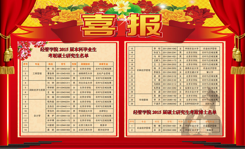 喜讯:熊猫体育2015届毕业生有29名考取硕士,2名考取博士