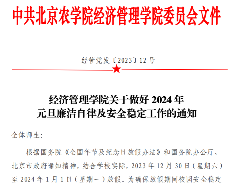 2024年元旦前夕,经济管理公司党委就做好节日期间廉洁自律和安全稳定工作专门做出部署。