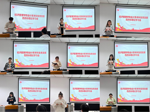 熊猫体育会计系本科生党支部召开四月份理论学习会,重点学习《中国共产党纪律处分条例》以及“学习纪律强化月”的相关要求,引领带动支部党员、积极分子学党纪、律自身、见行动、促发展,会议由支部书记吴曈主持。