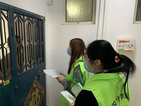 尽管时隔一个寒假,但经济系本科生支部党员、积极分子们参与社区志愿服务的热情丝毫未减。在农公司社区居委会进行了培训后,同学们便铆足干劲,在农公司社区工作人员的指导下,开始敲门入户进行垃圾分类的宣传活动。