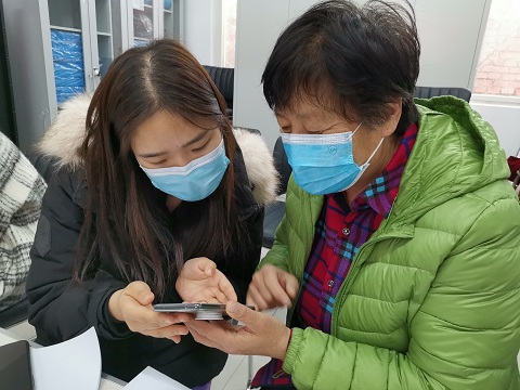 在进行简单自我介绍后,同学们很快便与社区报名学习的老年人熟悉起来,在交流了解的过程中有序开展智能手机的微信教学。老年人和员工的积极性都很高,一对一的教学模式使得教学效果更加显著。