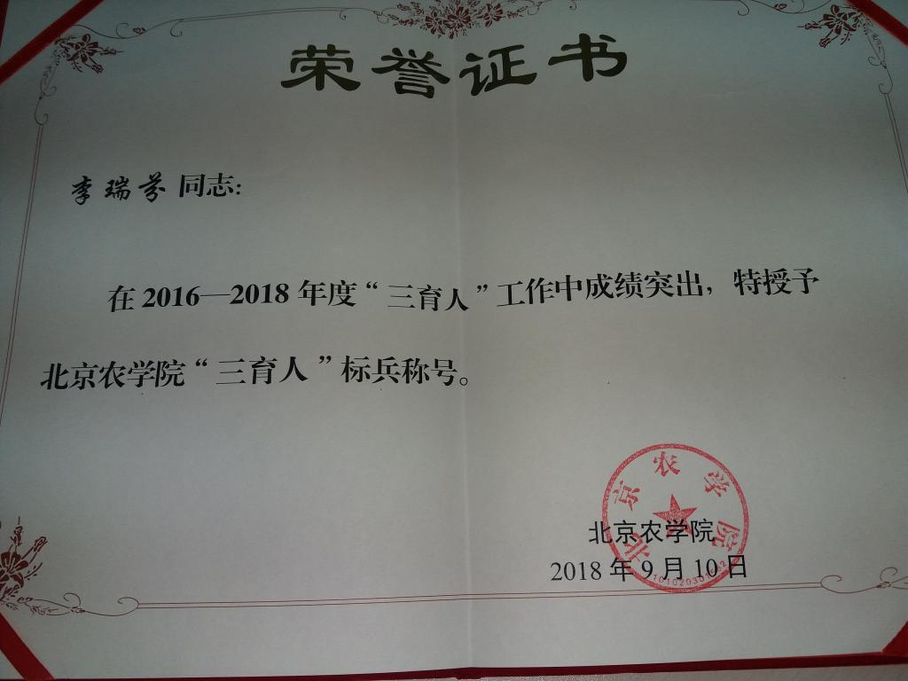 会计系教师党支部李瑞芬教师由于在2016——2018年度“三育人”工作中成绩突出,被授予熊猫体育”三育人“标兵称号。